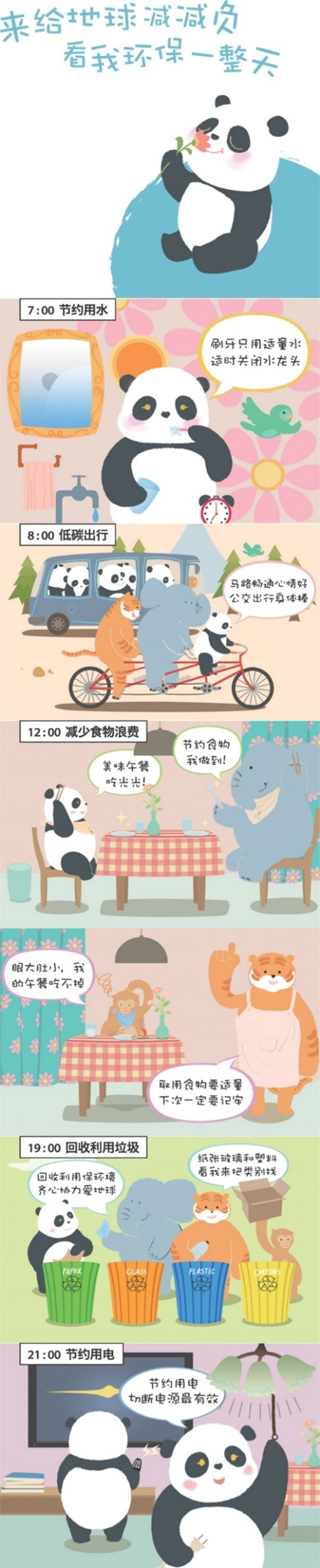 作为生活在都市里的人群,如果说让我们立马投身大熊猫野外行为观察、大熊猫遗传研究等相关的保护工作会显得不那么现实,而保护大熊猫是可以从身边的环保行为做起——保护我们共同生活的家园,就是在保护大熊猫。那么,行动起来,在“国际熊猫日”里跟着熊猫君挑战环保一整天!