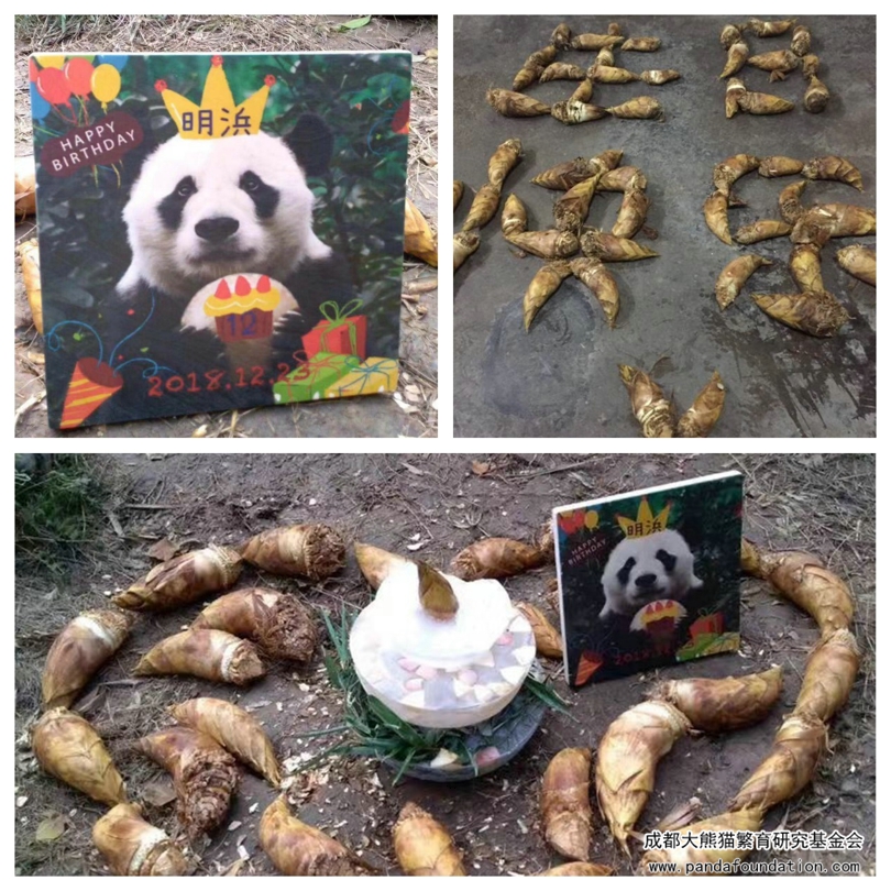 23日的一大早,就有很多喜爱明浜的大熊猫粉丝专程前来为它庆祝生日,其中还有几位粉丝是从日本赶来的,为明浜制作了专属生日画板。奶妈也专门为明浜制作了三层冰蛋糕,还准备了很多明浜最爱吃的冬笋。