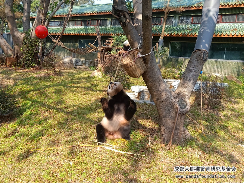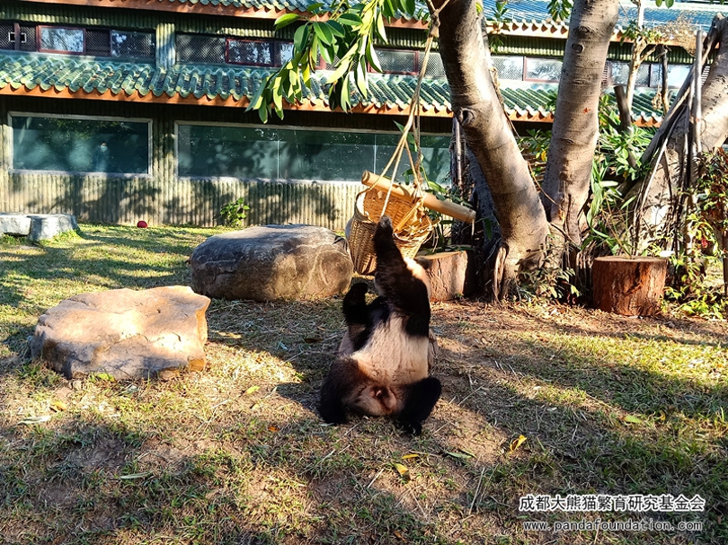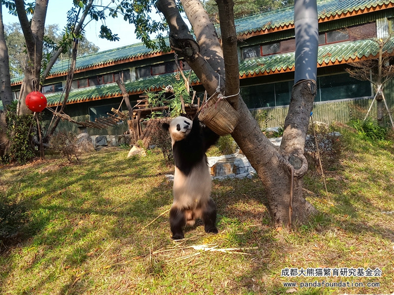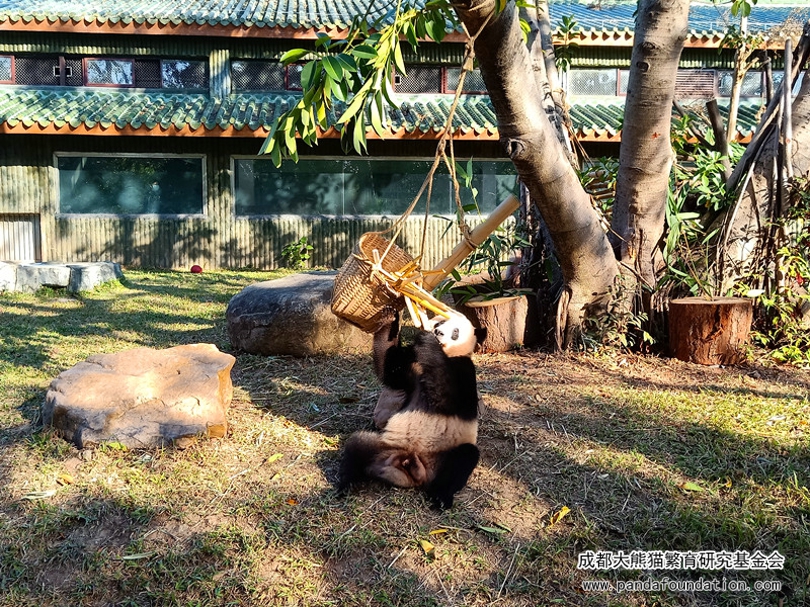 不一会儿,“雅一”便失去了兴趣,移步去了栖架,开始继续吃竹子