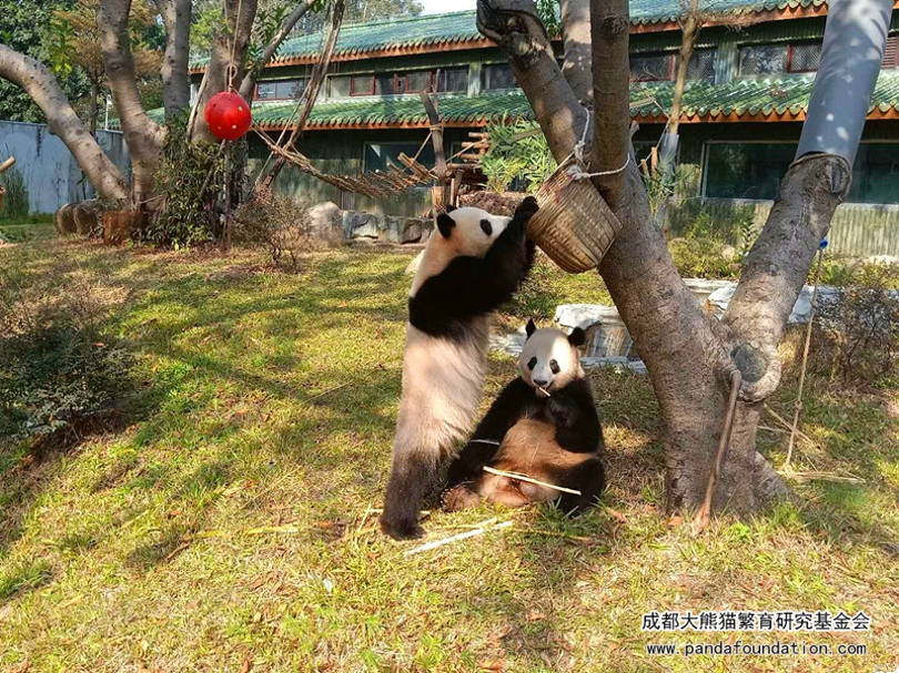 今天的天气适宜,熊猫们都在室外运动场活动。帅气的“星一”率先出场,“雅一”则是等“星一”开吃了之后,才慢悠悠地从室内出来。“星一”与“雅一”均生于2013年8月,说起来它俩还是表兄妹呢。“星一”稍大几天是哥哥,脸稍尖,长相俊秀,平时较为安静。妹妹“雅一”脸蓬蓬的较圆,性格活泼好动。