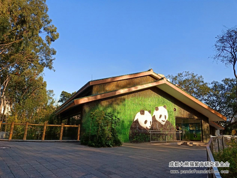 一到熊猫馆,首先映入眼帘的便是一座典型的中式建筑,高高的屋檐,塑竹的外墙,漂亮的琉璃瓦,墙面上还绘有乖巧吃竹的大熊猫。环形的观景玻璃廊道直通馆内,游客们可以非常近距离地看到大熊猫。