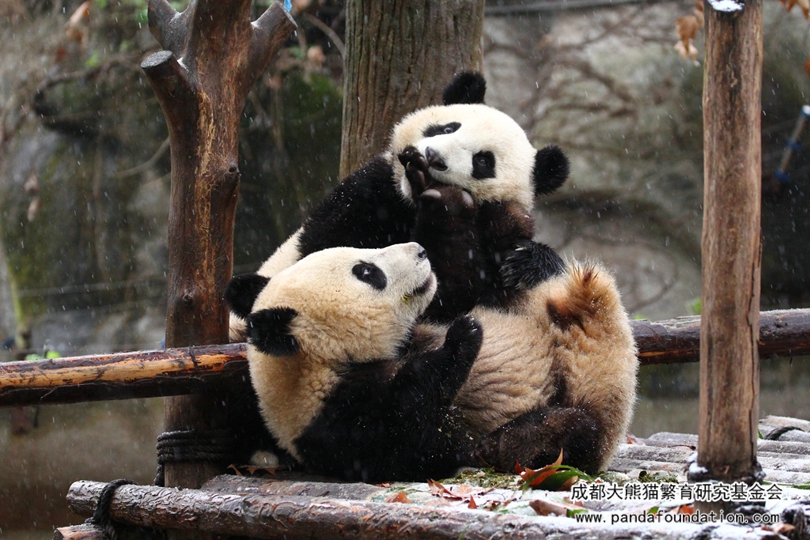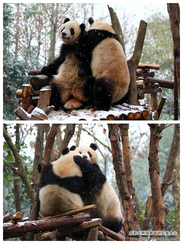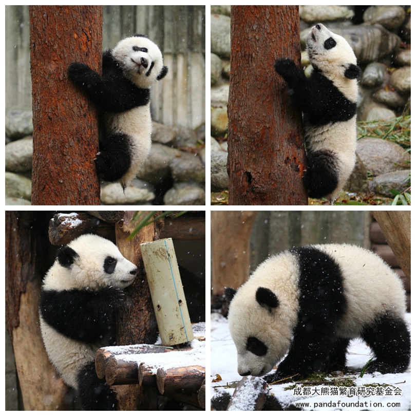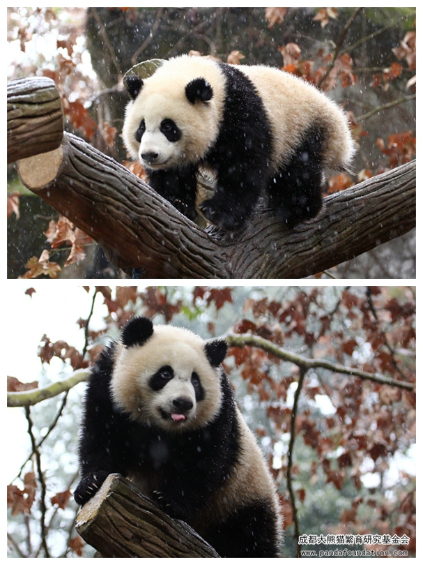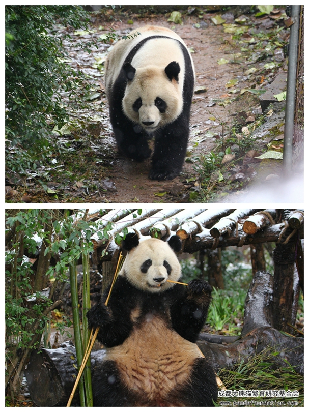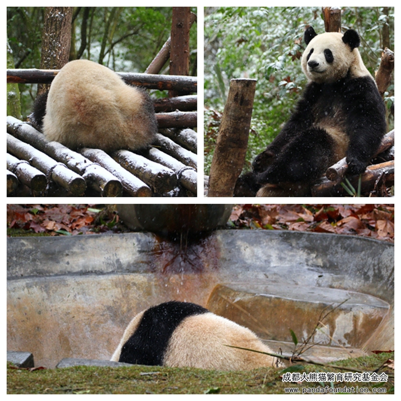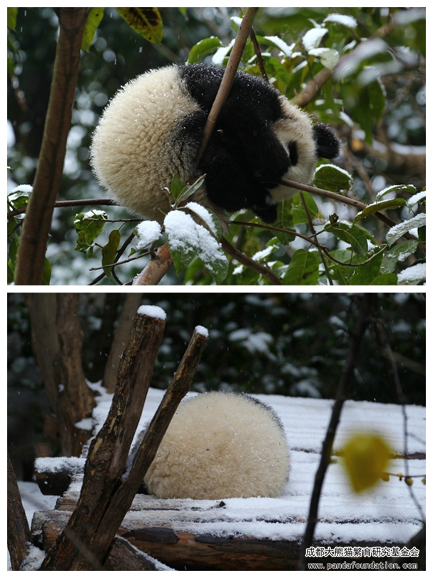 难得的下雪天,大熊猫们比平时兴奋很多,来参观的游客们都惊呼大饱眼福!明天就是元旦小长假了,气温也一直走低,有时间的话大家可以到这里来看看它们,幸运的话还可以看到雪地“糯米团”到处打滚的场景哦!