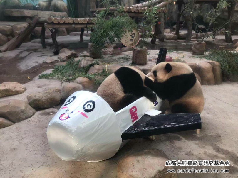 虽然生日会因为超强台风利奇马的侵袭,不得不延迟到8月18日举行,但是为了让它们过一个特别的生日,饲养员们还是精心准备了美味又可口、防暑又健康的冰蛋糕和好吃又好看的水果冰。之前长期分居的两兄妹,终于又再度团圆,聚在一起享受属于它们的生日大餐了。除此之外,动物园还专门为它们准备了精美的生日礼物——丰容玩具,同时邀请了和大熊猫同一天生日的小朋友们一起过生日,这样的生日真是太棒了。