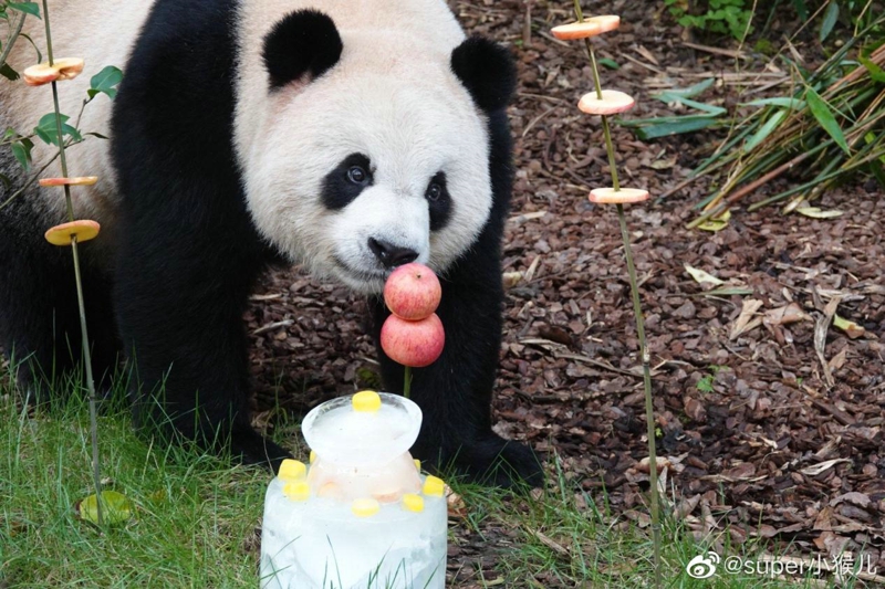 不愧是奥氏矿业的煤老板,奥胖胖的生日牌面很不错哦!看得出是饲养员们精心设计的!