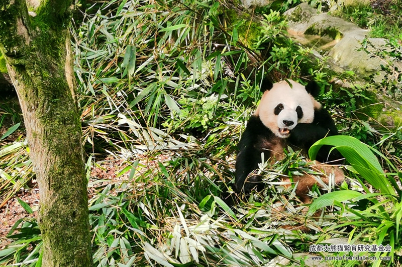 清晨的熊猫谷,蓝天白云,空气清新,正是看大熊猫的好时机