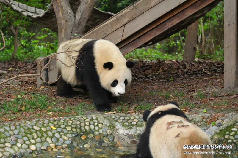 参观熊猫基地时,如果你仔细观察,你会发现在大熊猫的室外活动场都提供有一方水池。这是因为大熊猫生性喜水,这一汪池水不仅可以供大熊猫饮用,还能供它们玩乐。平日里大熊猫就非常喜欢戏水,这一爱好给它们的生活带来了很多的乐趣。