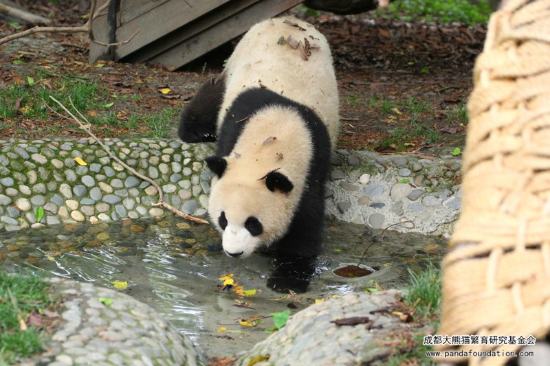 最近在太阳产房,大熊猫娅韵的一对龙凤胎宝宝——姐姐韵文,弟弟韵武,就经常开心地在水池里戏水。