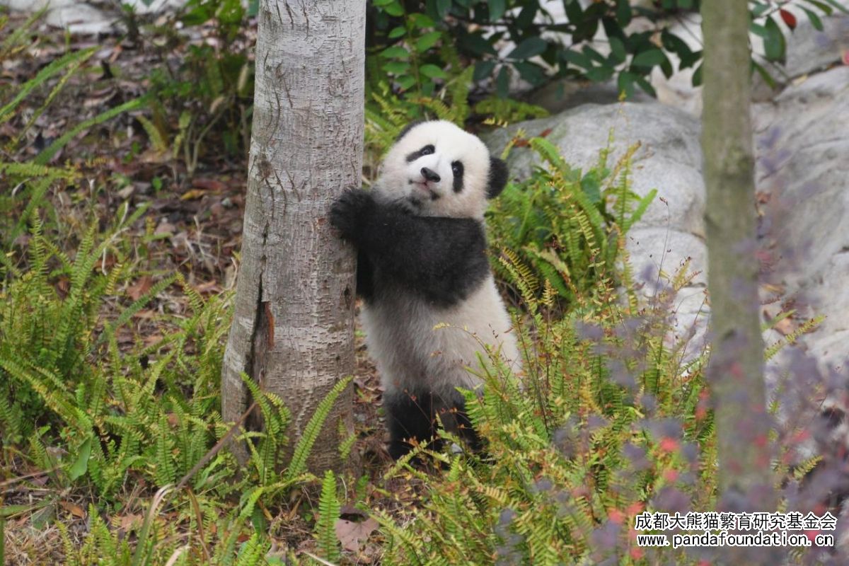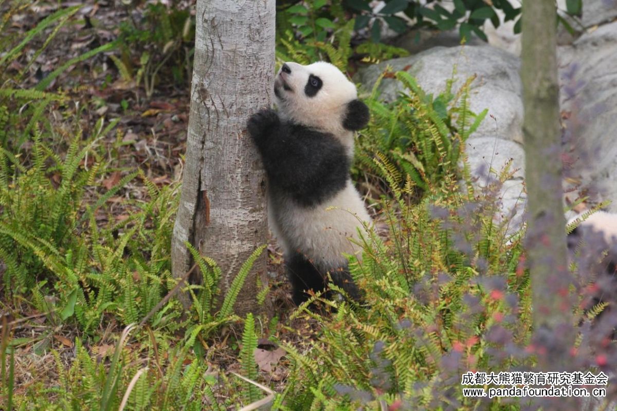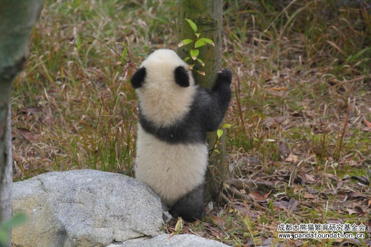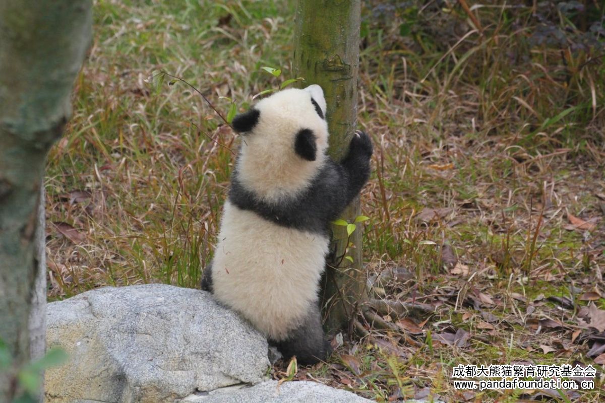 “少年心事当拿云,谁念幽寒坐呜呃。”李贺名作《致酒行》的最后两句豪气干云,昂扬向上:少年人心性豪放,当志存高远,有摘下白云的气魄。2025级的熊猫宝宝也有“拿云之志”,它们在韶华正盛之时,敢于挑战合抱之木,力求上进的气概令人动容。