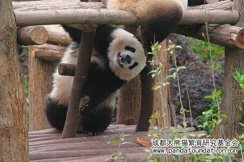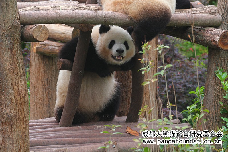虽然长得甜美,可也是一只有力量的熊猫哦!