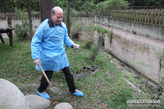 在大熊猫的肠胃中,没有分解纤维素的酶,这使得它们的粪便里面依然有未消化的成形的竹节纤维,竹节纤维呈竹绿色,并带有淡淡的竹子味。成年大熊猫每天会产生约10-20公斤的粪便,饲养员需要把它们都搜集起来进行称重,以便监测大熊猫的健康状况。大熊猫的粪便有可能排在运动场的任何一个角落,因此,搜集清理所有的粪便并非易事,让我们看看这些“饲养员新手”们完成得如何: