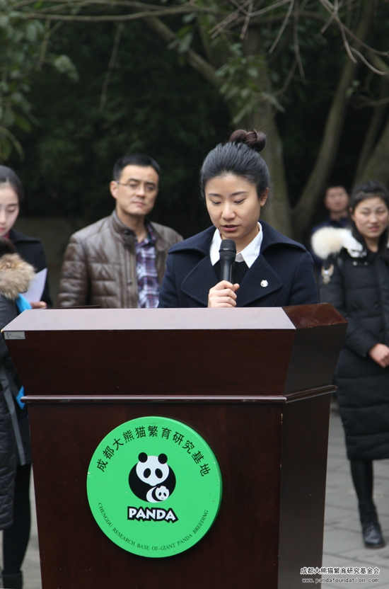 捐赠仪式上,卿娟代表成都大熊猫繁育研究基金会向星巴克咖啡有限公司致感谢辞,感谢星巴克对大熊猫的关注和热爱以及为大熊猫保护发展事业的慷慨捐助,并表示大熊猫保护事业的欣欣向荣离不开有社会责任感企业的大力支持。
