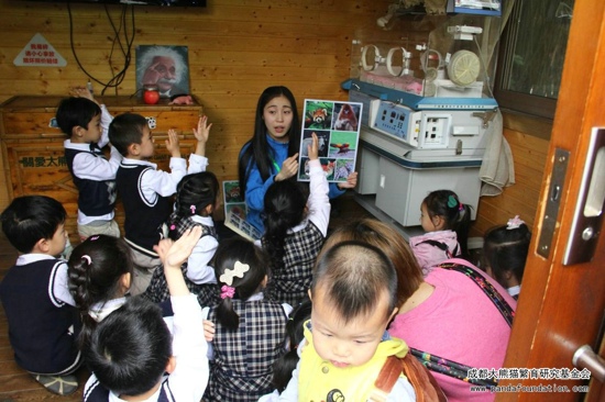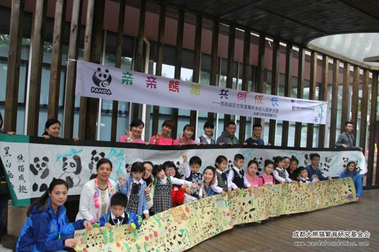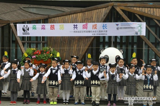2016年4月21日,来自西部战区空军直属机关幼儿园的小朋友们来到成都大熊猫繁育研究基地,参加了由成都大熊猫繁育研究基金会主办的科普教育实践活动“亲亲熊猫 共同成长”。