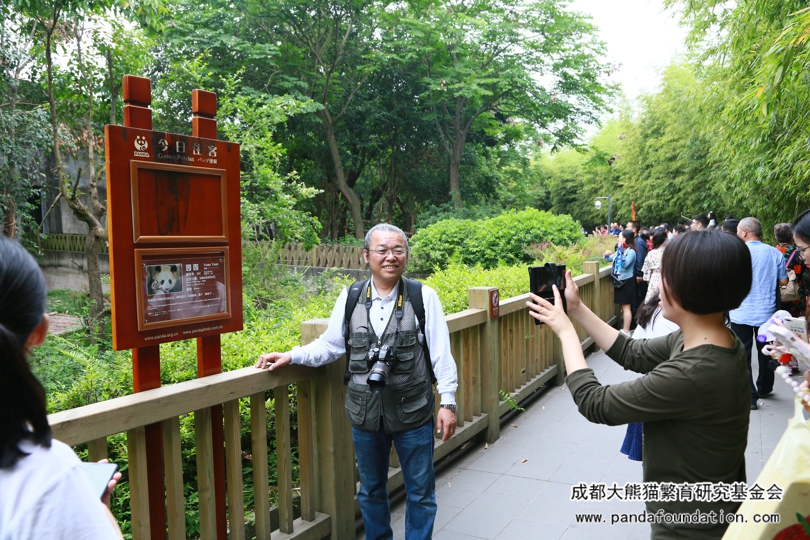 2018年5月6日,我会工作人员在成都大熊猫繁育研究基地大门外,迎接到了一位大家熟悉的客人——武藤勝俊先生。此次武藤先生是代表自己的工作单位——日本中医药研究会,对大熊猫“冠元”进行第15年的认养。