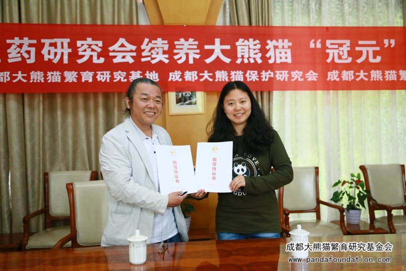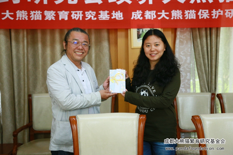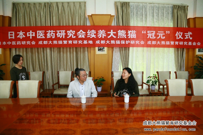 认养仪式在熊猫基地会议室进行。仪式上,武藤先生很感概地说:“这十五年见证了大熊猫‘冠元’的成长,同时也代表了中日友好关系的继续。”我会代表也有感而发,由衷地表达了对日本中医药研究会持续认养大熊猫“冠元”的感谢。