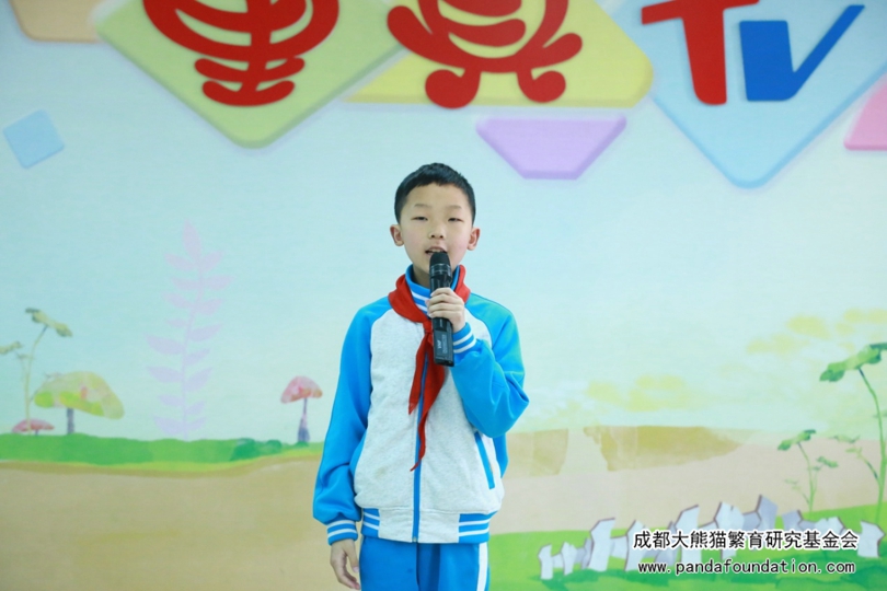 最后,小主持们请学生代表发言。这位可爱的小同学说,他很早以前就知道大熊猫“源源”了,希望通过这次爱心行动,唤起更多人对国宝大熊猫的关爱之心。