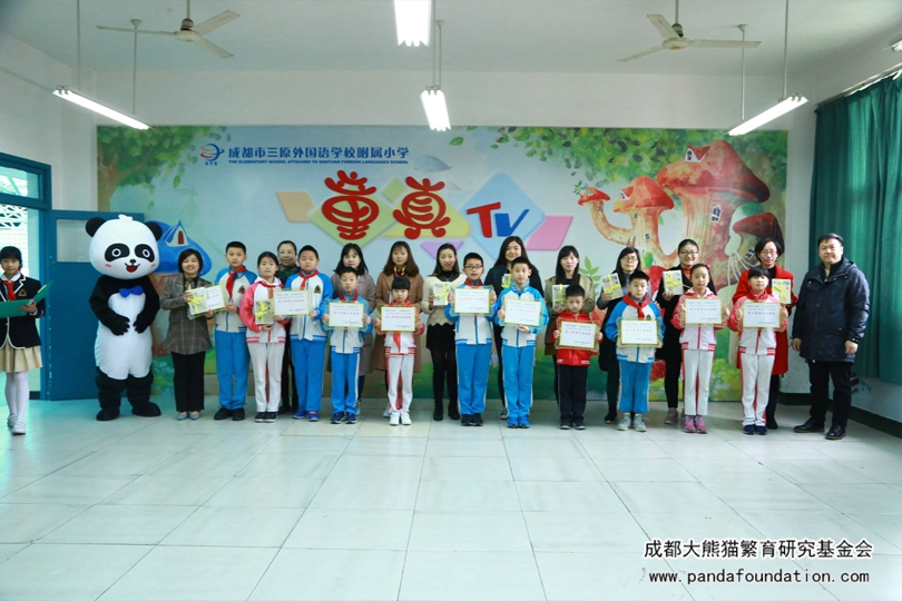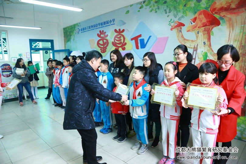 “我听说咱们的国宝大熊猫有两个小心愿,你知道是什么吗?”随着两位小主持的互相打趣,简短而不失隆重的捐赠仪式在三原附小的中心机房拉开了帷幕,通过学校的“童真TV”向全校师生同步直播。