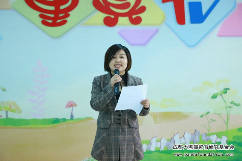 两位小主持首先邀请了学校德育处的熊主任发言。熊主任表示,三原附小的师生们历来富有爱心,关爱生命,平日里也开展了向孤寡老人送温暖、为贫困儿童捐书籍等爱心活动。本次为了给大熊猫“源源”筹集善款,各班级采用了开展义卖活动、开办跳蚤市场等多种形式。希望通过这样的活动,加强同学们对国宝大熊猫的关爱之情,传播野生动物保护的生态文明理念。