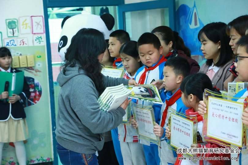 为表彰师生们本次的爱心行动,三原附小评选了“关爱大熊猫‘源源’爱心捐赠十佳班级”,为班级代表颁发了奖状并送上若干书籍以资鼓励。为了回馈这一善举,我会也为师生们准备了大熊猫涂色明信片和大熊猫知识小百科等小礼物。