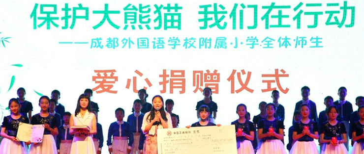 2019年4月4日上午,我会代表受邀前往成都市三原外国语学校附属小学,参加了该校师生关爱大熊猫“源源”捐赠仪式,并收到爱心捐款60000元。