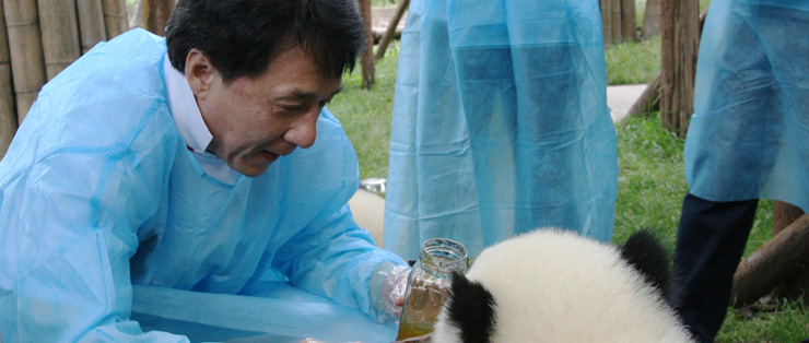 2009年5月12日,影、视、歌三栖国际巨星成龙先生出任成都熊猫大使暨认养大熊猫“成成”、“龙龙”仪式在成都大熊猫繁育研究基地隆重举行。