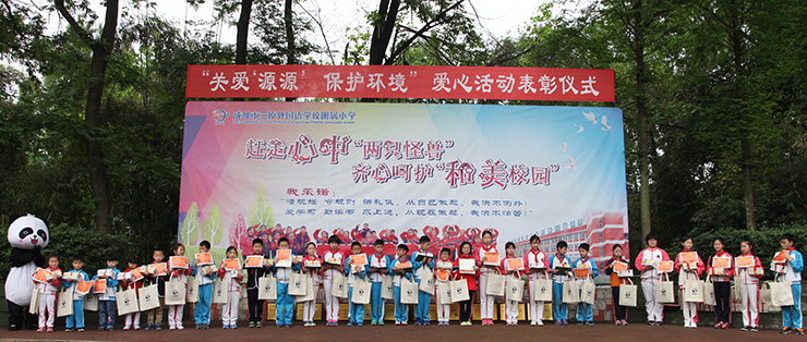 2017年4月14日,西部战区空军直属机关幼儿园中班的小同学们在老师和家长的带领下来到成都大熊猫繁育研究基地,将自己的爱心以捐款的形式捐献给我会。