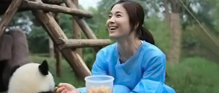 韩国著名影星宋慧乔作为“成都大熊猫基地熊猫爱心大使”亲赴成都大熊猫繁育研究基地拍摄公益宣传片,并为大熊猫做保育工作。