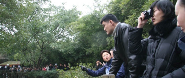 前NBA球星、“熊猫大使”姚明携妻子叶莉造访成都大熊猫繁育研究基地,出任成都熊猫大使。