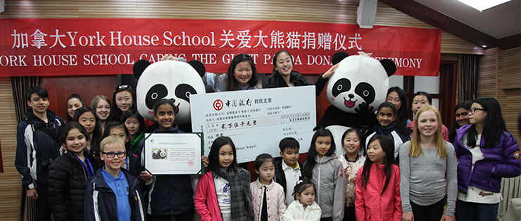 2017年3月23日,来自加拿大York House School学校的师生及家长来到成都大熊猫繁育研究基地,参加关爱大熊猫捐赠仪式,为大熊猫献上爱心捐款。