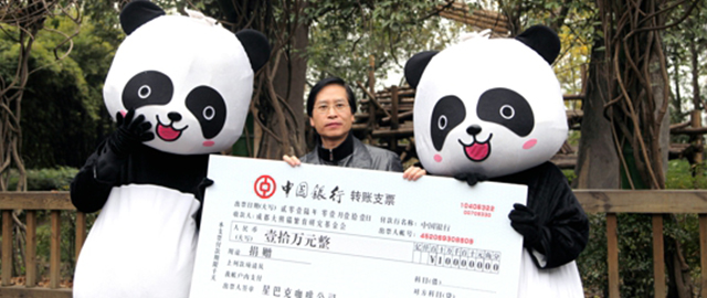 2016年1月11日下午2点,星巴克咖啡有限公司向成都大熊猫繁育研究基金会捐赠的仪式在成都大熊猫基地太阳产房前举行。