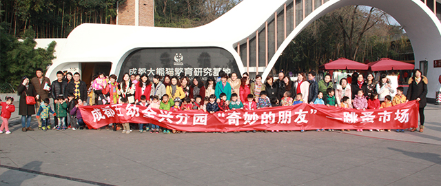 2016年1月16日上午,阳光明媚,成都熊猫基地成都大熊猫博物馆前迎来了一群可爱的捐赠者,他们来自成都第五幼儿园全兴分园。