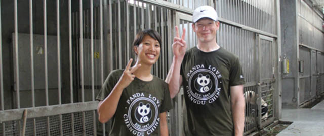 2005年7月1日,来自美国的Nguyen女士与Diekmann先生体验大熊猫饲养员保育工作,为大熊猫保护事业贡献一份力量。