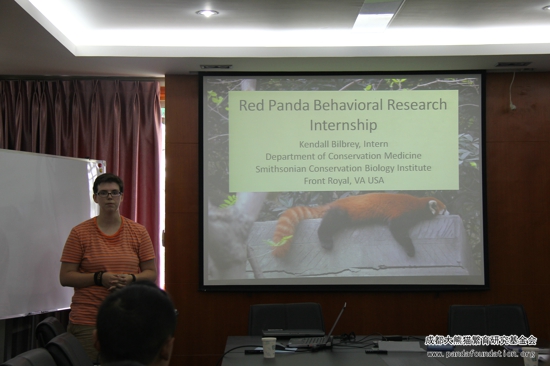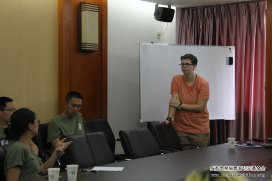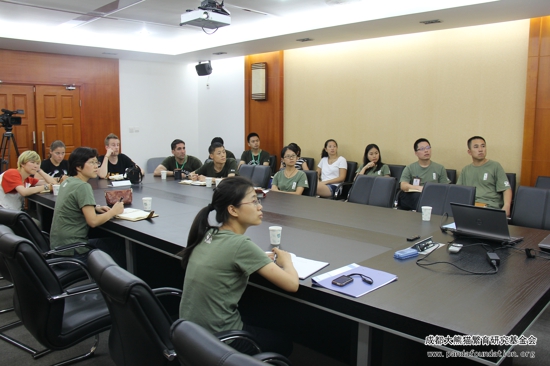 2013年6月22日下午,美国华盛顿动物园研究人员Ms. Kendall Bilbrey 在成都大熊猫繁育研究基地就其为期3个月的行为观察工作与成都大熊猫繁育研究基地的工作人员和研究人员作了一个简单的交流。