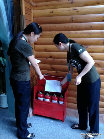 工作人员在检查灭火器是否合格