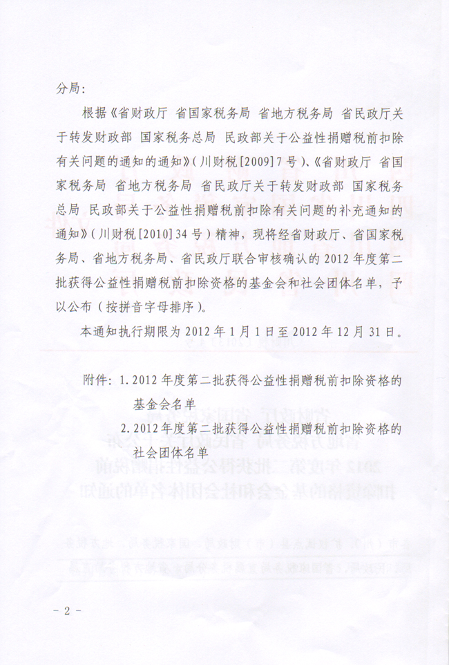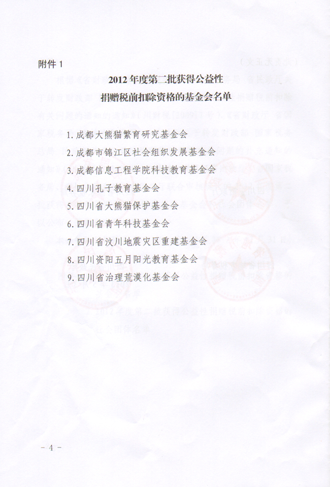 成都大熊猫繁育研究基金会获得2012年度第二批公益性捐赠税前扣除资格