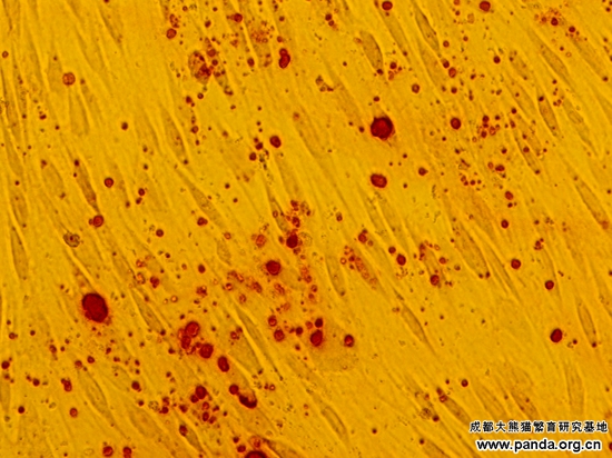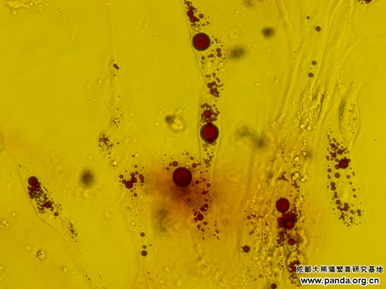 大熊猫骨髓间充质干细胞体外分化成脂肪细胞(染色后)