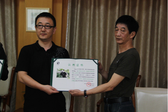 成都大熊猫繁育研究基金会刘建雄理事长授予认养证书给认养方