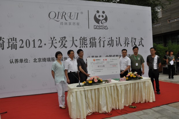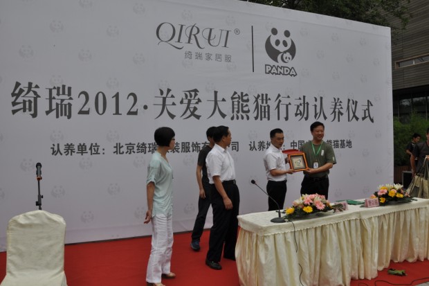 2012年6月21日下午2时,北京绮瑞服装服饰有限公司在成都大熊猫繁育研究基地隆重举行了大熊猫认养仪式,在仪式上认养了一只两岁雌性大熊猫,并取名为“绮瑞”。