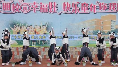 2012年3月31日下午两点,成都三原外语学校附属小学与成都大熊猫繁育研究基金会在成都大熊猫繁育研究基地共同举办了捐赠认养大熊猫“源源”仪式,学校领导及基金会项目主管分别在捐赠仪式上发表感言,200多名师生参加了捐赠认养仪式。三原外国语学校自2011年开始倡导同学们每天节约一角钱,为大熊猫多买一根竹子,同学们将自己平时的零花钱积攒起来,捐给处于濒临灭绝的国宝大熊猫,学校希望通过继续认养“源源”,培养孩子们从小养成爱护环境,保护动物的良好品德,也希望大熊猫能生活得更好。