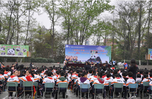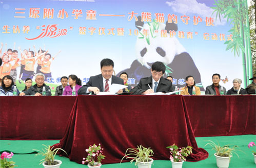 3月31日下午,成都三原外语学校附属小学与成都大熊猫繁育研究基金会在三原外语附小共同举办了捐赠认养大熊猫“源源”仪式,学校1600多名师生参加了捐赠认养仪式。学校倡导同学们每天节约一角钱,为大熊猫多买一根竹子,同学们将自己平时的零花钱积攒起来,捐给处于濒临灭绝的国宝大熊猫,学校希望通过认养“源源”,培养孩子们从小养成爱护环境,保护动物的良好品德,希望大熊猫能生活得更好。同时,学校还将与成都大熊猫繁育研究基金会合作,共同协办好《大熊猫》杂志,为世界各地热爱大熊猫的人们提供更多大熊猫的知识和趣闻。