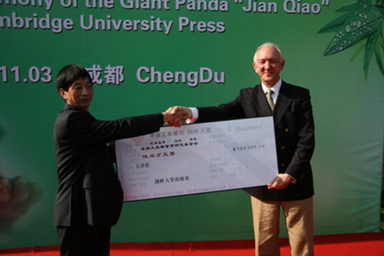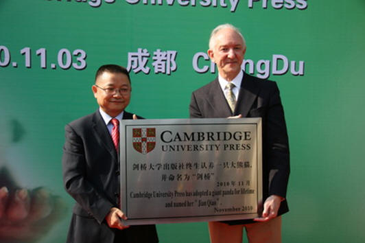 3日上午,世界知名的剑桥大学出版社捐资50万元人民币,在成都大熊猫繁育研究基地终生认养了一只大熊猫,并取名为“剑桥”。