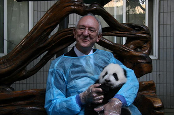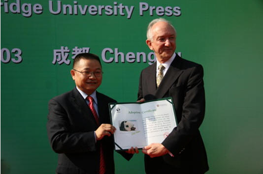 剑桥大学出版社全球首席执行官潘仕勋、亚洲总裁兼亚太区财务总监罗融安、大中华区总裁袁江一行,出席了3日在成都大熊猫基地举行的认养仪式。