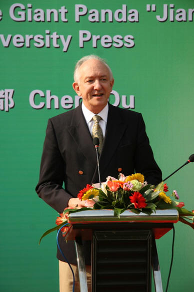 致辞中,潘仕勋希望并相信通过可爱的大熊猫“剑桥”,可以在成都和剑桥之间,在中英两个国家之间建立一座全新的、活动的桥梁。