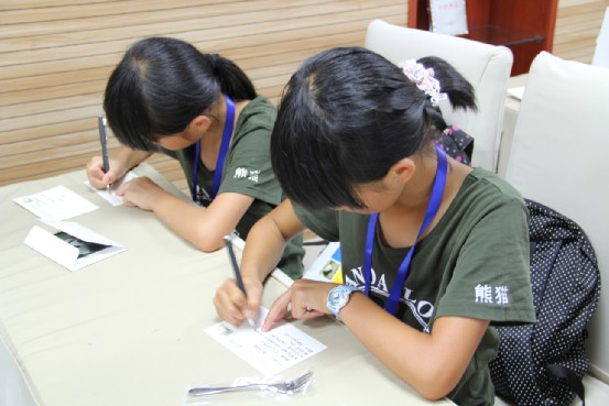 下午13时30分,芦山县师生在熊猫基地科普教育人员的引领下分别参观了“大熊猫探秘馆”、熊猫兽舍和熊猫运动场、“熊猫厨房”,了解到熊猫更多的知识与秘密,并在“大熊猫保育员见习活动工作站”亲身体验大熊猫保育工作,与大熊猫进行零距离亲密接触。最后,同学们来到“熊猫国邮局”,在活动赠送的熊猫明信片上盖上特别的熊猫邮戳,亲手投进信箱,为第一天的活动划下了完美的句号。