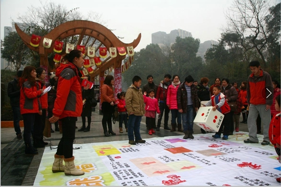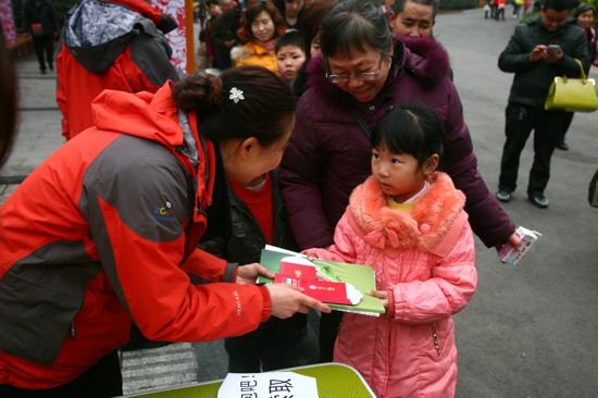 大年初一,王强园长代表成都动物园向游客送上了马年祝福和礼物。马年送福活动,从初一到初七共持续七天,共向公众免费发放60周年纪念册3000本 ,2013年册482本,马年挂件410份,福袋42800个,动物宝宝书3167本,豚鹿笔记本2773本,金丝猴育幼书4878本。