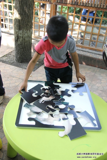 拼图中的动物都是可以在动物园内寻找到的、较为常见的动物,如熊猫、梅花鹿、斑马、天鹅等,参加活动的小朋友们都可以获得一枚熊猫造型的胸章作为纪念和奖励。