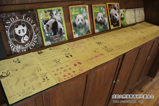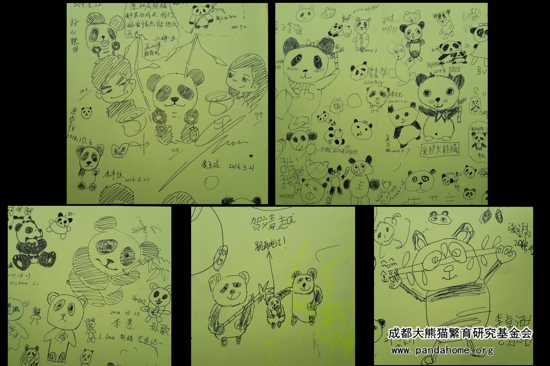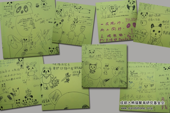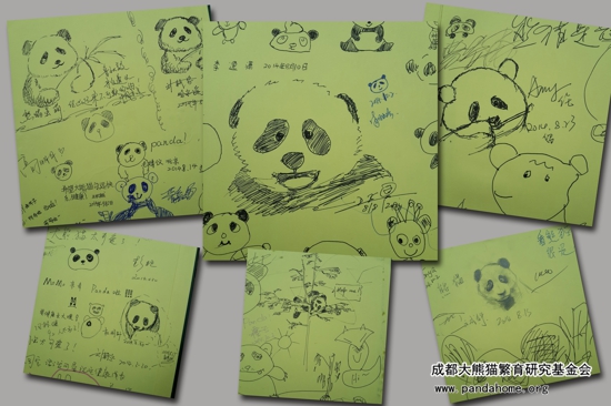 以上展示的只是部分爱心人士的留言,如果您对这些留言感兴趣,或是也想留下您的“大作”以表达对大熊猫的喜爱,亦或是想给我们提出宝贵的意见和建议,欢迎您在前往位于成都熊猫基地月亮产房旁的“成都大熊猫繁育研究基金会募捐点”来留言,“神秘绘本”在这里等着您!