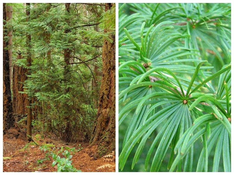 在纬度略高于四川大熊猫领地的秦岭山脉,植被类型上与四川有所区别。在秦岭海拔800-1800米的低山与中山区,长有暖温带落叶阔叶与针叶混交林,而不是亚热带混交林,乔木树种以栓皮栎、麻栎、锐齿栎为主,次为漆树、板栗、白桦。针叶树有油松、华山松和马尾松,松下伴生有巴山木竹,这里是大熊猫在冬季的主要觅食基地。