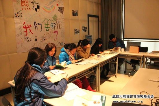 天气逐渐变冷,但是基金会工作人员的学习热情依旧高涨。12月12日开始,成都大熊猫繁育研究基金会(以下简称基金会)派专人组织驻熊猫基地项目组的基金会工作人员,利用活动开展的间歇时间,在熊猫基地探秘馆教室内进行大熊猫相关专业知识的讨论学习。基金会针对这次学习指定了参考书,希望工作人员通过自我学习和讨论的方式能够在专业知识方面有所提高。