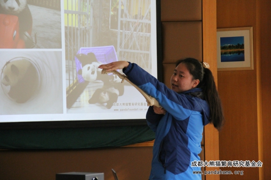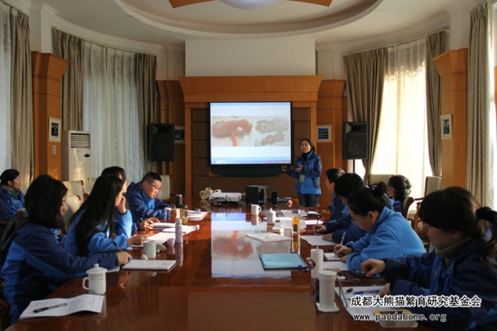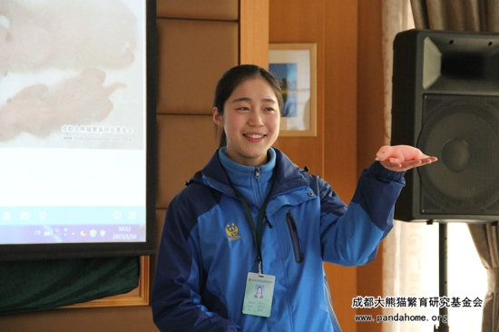 2015年1月15日至16日,我会对公众教育项目部所有项目专员进行了2014年讲解考评。17名项目专员依次上台用中、英文进行大熊猫公众教育知识讲解,由其它部门派人组成的评审团进行考评打分。