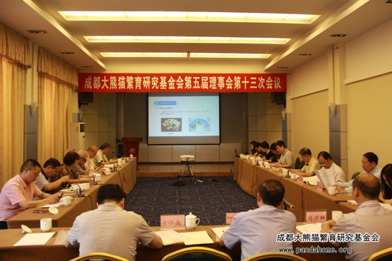 5月20日上午十时,成都大熊猫繁育研究基金会在金河宾馆会议室召开了第五届理事会第十三次会议,会议应到参会理事15人,实到理事12人,监事及管理部门相关代表列席会议,名誉理事及顾问应邀参与了会议。